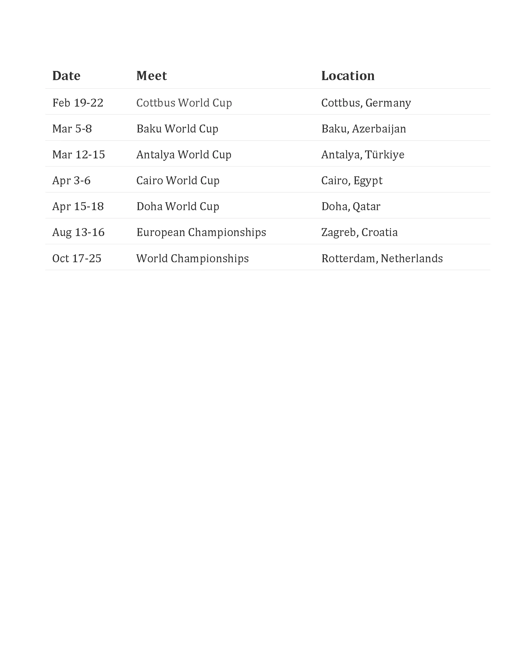 Artistic Gymnastics Competition Calendar